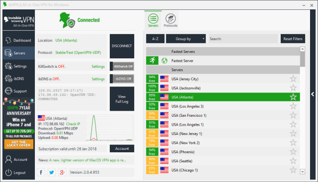 无限制应用访问。Anonine 还通过 PPTP 加速器 支持 iPhone。支持 Windows、Mac、Linux 和 iOS 设备。